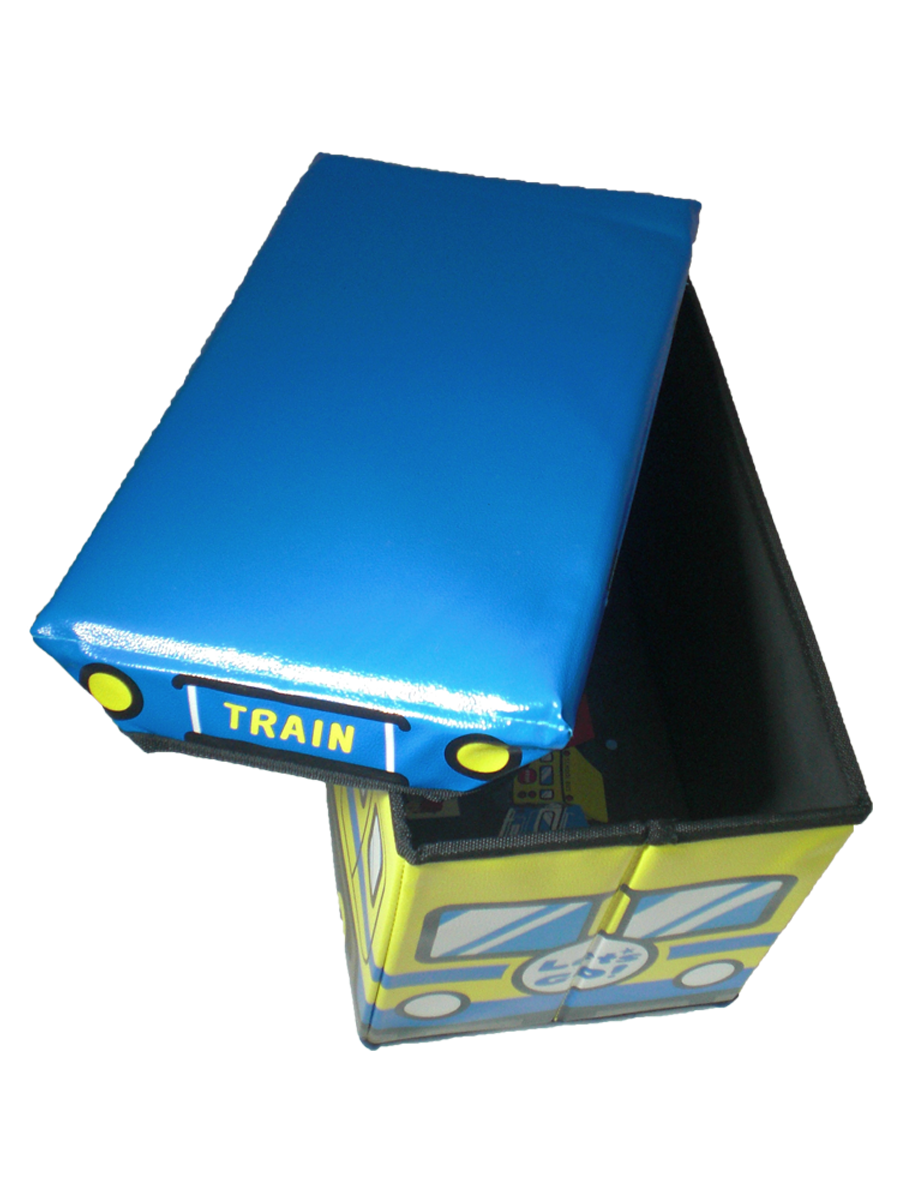 Το παιδικό αποθηκευτικό κουτί σκαμπό με σχήμα-σχέδιο “Τραίνο”, εκτός της δυνατότητας του για αποθήκευση εσωτερικά πολλών πραγμάτων (παιχνίδια, ρούχα, κλπ) προσφέρεται επίσης για παιχνίδι για παιδιά όσο και για διακοσμητικό χώρου ή δωματίου και διατίθεται σε μεγάλα και μικρά μεγέθη.