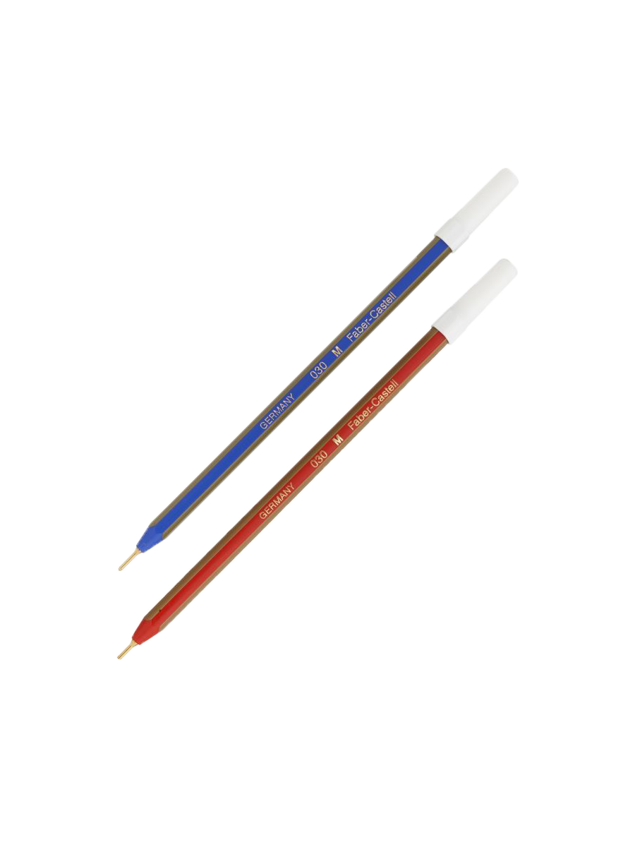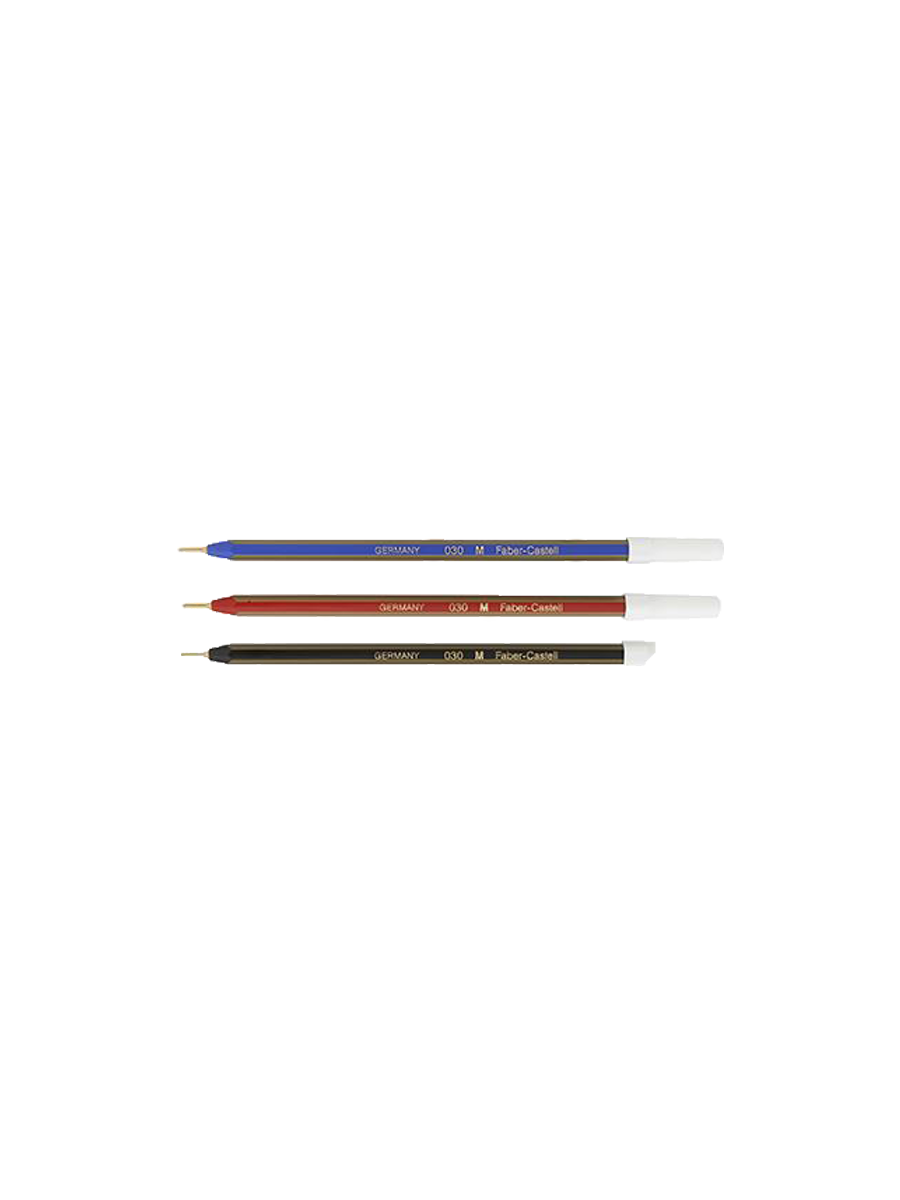 Στυλό επώνυμα Faber Castell για χρήση στο γραφείο, σχολείο, κλπ. Παρέχεται σε τρία χρώματα/μελάνια, μπλε, κόκκινο και μαύρο. Διατίθεται και σε χονδρική αναλόγως της παραγγελίας των στυλό σε τεμάχια.