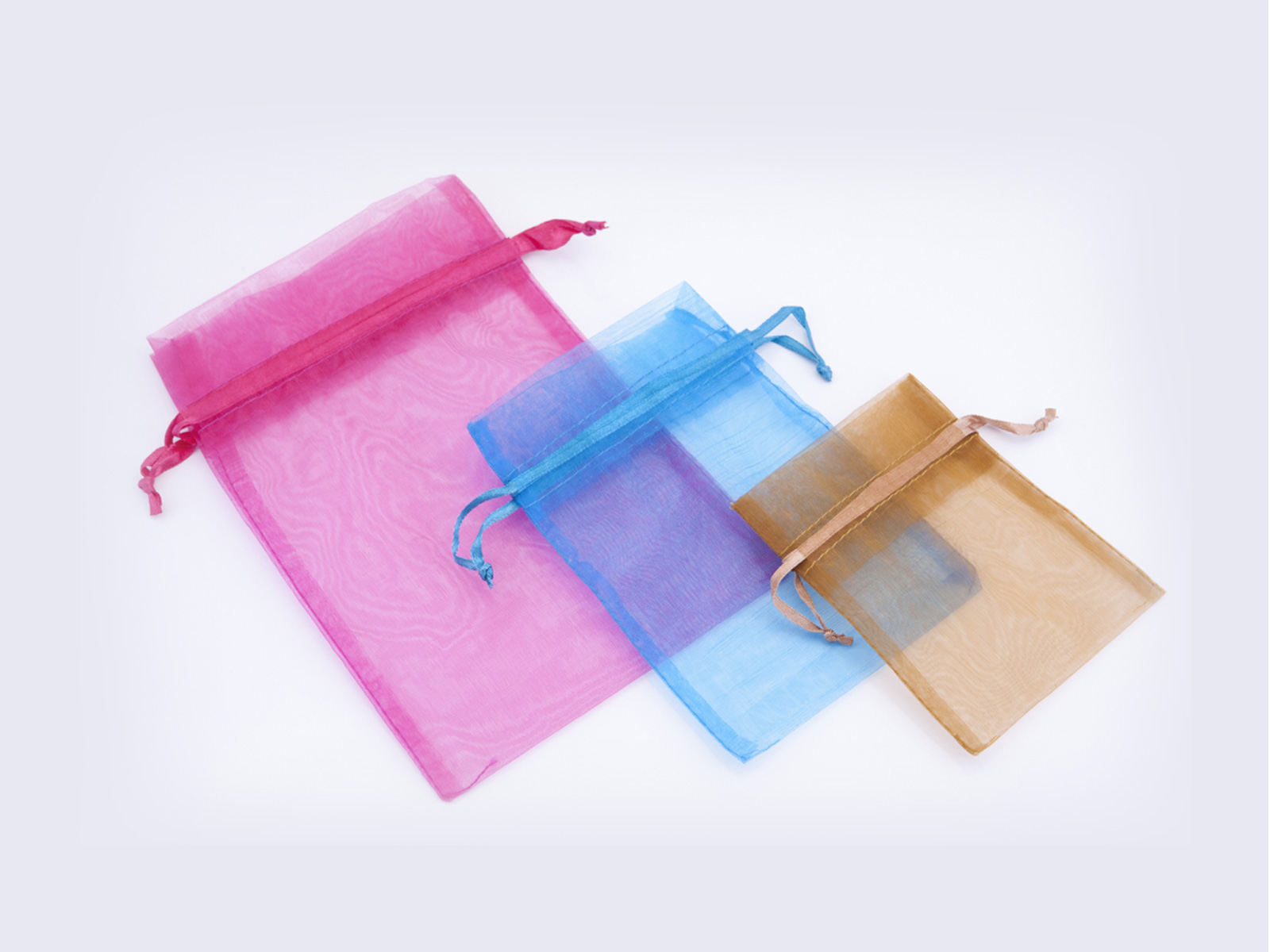 Τα πουγκιά από οργάντζα είναι ιδανικά για μια πιο κομψή και προσεγμένη ή αρτίστικη συσκευασία. Έχουν ελαφριά, διάφανη υφή και λινή ύφανση.