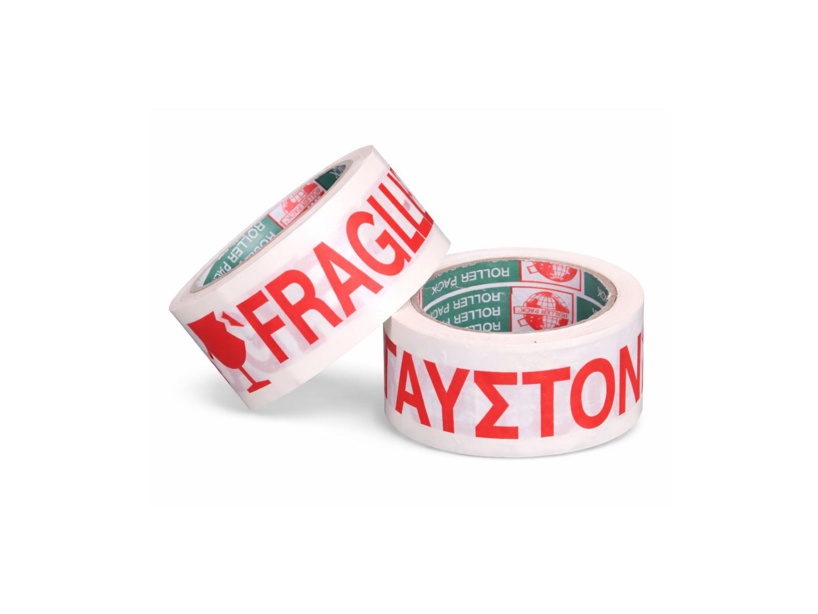 Η κολλητική ταινία συσκευασίας εύθραυστον προσφέρεται για σφράγιση χαρτοκιβωτίων, κιβωτίων και δεμάτων που εμπεριέχουν εύθραυστα υλικά και αντικείμενα, αντέχουν σε υψηλές αλλά και χαμηλές θερμοκρασίες, παρέχουν την ένδειξη “Fragile” προκειμένου να δώσουν στα δέματα τον χαρακτήρα που απαιτείται για την ασφαλή συσκευασία ή και μεταφορά τους. Διατίθεται σε δύο υλικά είτε από «πολυπροπυλένιο» (αθόρυβη αυτοκόλλητη ταινία με ακρυλική κόλλα) είτε από «πολυαιθυλένιο ή πολυβινύλιο PVC» (Mε solvent κόλλα για ακόμα ισχυρότερη συγκόλληση).