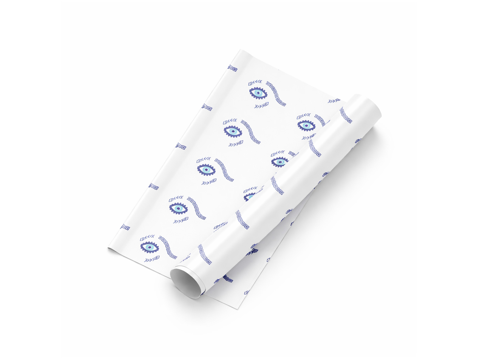 Το χαρτί αφής με ελληνικό μοτίβο “μάτι” είναι ιδανικό για τουριστικές και premium συσκευασίες. Είναι διαθέσιμο σε διαστάσεις 35×50 cm και 50×70 cm, με απαλή ματ υφή που προσδίδει ιδιαίτερο χαρακτήρα σε κάθε προϊόν.
